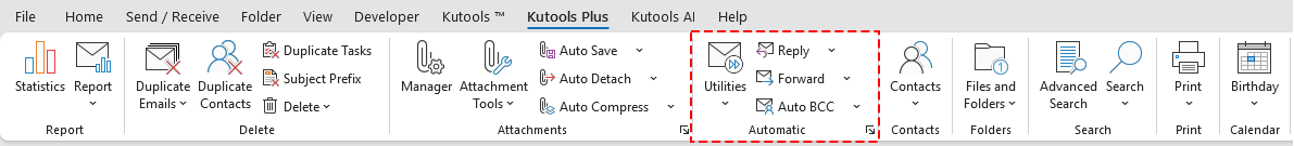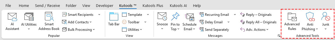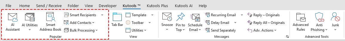 Note: The Kutools tab appears when you open an email in the Outlook reading pane.