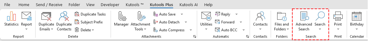 Attachment Tools: This group collects some useful tools for easily handling Outlook attachments: