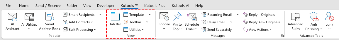 Note: The Kutools tab becomes visible when an email is opened in the Outlook reading pane.