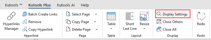 To use the Display Settings feature, click Kutools Plus > Display Settings.